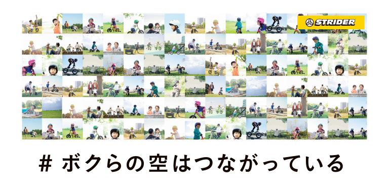 今はリアルに会えなくても、またいつか同じ空の下で会おうね、という願いもこめて、ストライダーキッズと空が映った写真を組み合わせて一つの大きなビジュアルを制作したいと思います。